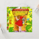 Un classique de cru avec peu de capuchon rouge sur l'avant, portant son panier de goodie comme elle frappe à la porte de cottage de grands-mères et est entourée par des fleurs. Sur le dos elle la montre arrivant aux grand-mamans cottage et est saluée par tous les animaux dans la forêt comprenant un écureuil mignon et un oiseau bleu. Grand pour toute célébration d'anniversaire !