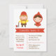 Jetez une partie basée sur le conte de fées d'enfants familiers du petit capuchon rouge ! Cette invitation mignonne de fête d'anniversaire a les caractères de l'histoire avec le petit capuchon rouge mignon portant un panier minuscule et du bûcheron habillé dans le long tee - shirt jaune de douilles, le pantalon brun et les bottes avec une hache dans sa main. La page inverse a le grand mauvais loup ou plutôt un loup gentil mignon qui se tient dessus sur une pomme. Personnalisez facilement avec vos détails de partie.