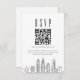Une carte de code rsvp QR minimaliste de mariage avec une belle silhouette stylisée représentant la ville de Philadelphie, Pennsylvanie. Remplacez le code QR par un lien vers votre site Web pour faciliter la réponse à votre événement mariage pour vos futurs invités.