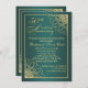 Invitation 50e anniversaire de mariage avec ornement tourbillonnant doré sur fond dégradé sarcelle. Au dos - vous pouvez ajouter votre propre photo et informations personnelles.