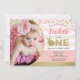 Élégante invitation photo rose et or thème lapin mignon pour l'anniversaire 1 an de votre fille.