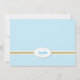 Invitation moderne chic avec des rayures bleues et blanches décorées de confettis dorés.