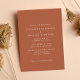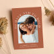 Faire-part de mariage orange brûlé moderne aux tons terre avec votre photo dans un cadre voûté entouré de "To Have And To Hold" dans une élégante typographie blanche. Sous votre photo, ajoutez vos prénoms, votre date de mariage et votre emplacement. Au contraire, personnalisez votre invitation de manière plus détaillée dans une simple typographie.