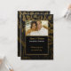 Elégante invitation de mariage sur damas floral noir et or avec bordure d'accent or. Customisez l'invitation avec un téléchargement photo, l'heure, la date, l'emplacement, la réception et d'autres informations. Thèmes correspondants disponibles sur d'autres produits dans mon magasin.