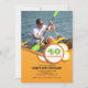 Une invitation photo tendance avec un fond tissé, en orange brûlé, et des cercles festifs. Parfait pour tout âge ou sexe.