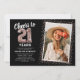 Célébrez le grand événement de vos vingt et un ans avec nos élégantes invitations de fête d'anniversaire. Avec un fond noir tendance personnalisable, un espace photo personnel et des accents dorés rosés, ces invitations laisseront une impression durable. Les détails de ballon hélium rose gold ajoutent une touche de magie, tandis que le modèle de texte d'anniversaire 21 ans moderne est incroyablement facile à personnaliser. Parce que le style n'a pas de limite d'âge !