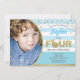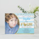 Invitation photo de fête sur le thème de lapin mignon bleu et or pour les 4 ans d'un garçon.