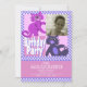Invitation de fête d'anniversaire de chats fous rose et violet avec cadre photo et beaucoup de place sur l'avant et l'arrière pour le texte. Customisez pour convenir à votre style !