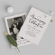 L'invitation moderne de 50e anniversaire de mariage en noir et blanc est parfaite pour votre fête d'anniversaire simple et classique. Le design minimaliste et élégant présente un aspect net et une calligraphie manuscrite romantique.