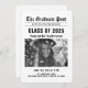 Célébrez la Classe de 2025 en style avec cette invitation unique de remise de diplômes inspirée du journal! Doté d'une mise en page moderne en noir et blanc, d'une typographie audacieuse à la une et d'une photo personnalisée, ce modèle modifiable est parfait pour les lycéens ou lycéens qui veulent faire une déclaration. Personnalisez facilement le nom, la date, l'heure, l'emplacement et la photo. Un moyen amusant et mémorable pour les amis invitations et la famille à la grande fête! Idéal pour une utilisation imprimée ou numérique.