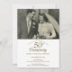 Personnalisez avec votre photo de mariage préférée et les détails de votre célébration spéciale du 50e anniversaire de mariage doré dans une typographie chic dorée. Le verso présente des confettis en forme de cœur dorés. Conçu par Thisisnotme©