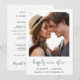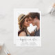 Fuite en amoureux simple et chic ou annonce de mariage privée et invitation à une réception après le mariage. Le devant présente votre photographie, « pour toujours heureux » dans un script élégant avec enjolivures et vos prénoms, date et lieu du mariage. Au verso, personnalisez votre annonce et invitation avec plus de détails, créez un code QR lié à votre site web de mariage pour que vos invités scannent pour plus d'informations et répondent en ligne, et ajoutez vos noms dans un script ressemblant à une signature.