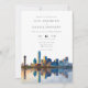 Cette élégante invitation de mariage à l'aquarelle de l'horizon de Dallas peut être personnalisée avec vos informations en typographie chic et toutes vos photos spéciales au verso. Conçue par Thisisnotme