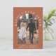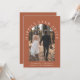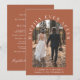 Faire-part de mariage et invitation de réception modernes en terre cuite pour une cérémonie intime. Le recto présente votre photo de mariage dans un cadre en arche et "Heureux pour toujours" dans une typographie blanche élégante. Ajoutez vos prénoms, date et lieu de mariage. Au verso, personnalisez votre faire-part de mariage et invitation de réception et ajoutez vos noms dans une écriture semblable à une signature.