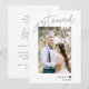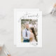 Invitation de réception de mariage après la cérémonie. Écriture élégante et photo de mariage avec les détails de la fête au dos.