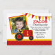 Joli tracteur 1er anniversaire design avec un tracteur rouge avec pois et grand jaune numéro 1. Pointe Polka et bordure rayée, bannière rouge et jaune et cadre pour votre propre photo. Texte personnalisable pour votre touche personnelle ! Parfait pour les petits agriculteurs ou tous ceux qui aiment les tracteurs. PinkInkArt original!