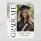 Les invitations de fête de fin d'études au design élégant et plat présentent une photo verticale du diplômé avec un texte moderne "Graduate" en serif noir décoratif et un texte qui peut être personnalisé avec le nom du diplômé et l'année de promotion. Le verso de la carte comprend une deuxième photo horizontale ainsi qu'un texte d'invitation à la fête de fin d'études personnalisé qui peut être modifié comme vous le souhaitez. La palette de couleurs noir et blanc classique et le design sont parfaits pour célébrer votre diplômé du lycée ou de l'université.