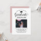 Invitation à une fête de fin d'études avec un script moderne « Graduate » accompagné d'une icône de chapeau et d'une disposition de photo. Design élégant et minimal pour un look soigné. Carte de fond rose poussiéreuse pour un accent doux et tendance. Personnalisez le nom et tous les détails de l'événement.