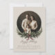 Elégante carte de vacances avec votre propre photo de famille entourée d'une couronne festive aux accents de ruban rouge. Les couleurs douces et neutres et la verdure créent un look chaleureux et classique, ce qui rend cette carte parfaite pour partager vos Bonnes Fêtes avec des êtres chers dans le style.