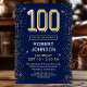 Cette fabuleuse invitation de 100e anniversaire marine bleu et or avec le numéro 100 en or avec les polices modernes et les côtés parties scintillant or sur le devant et une photo fabuleuse sur le dos serait parfaite pour demander aux gens de se joindre à vous pour célébrer l'homme dans votre vie 100e anniversaire. Traditionnel et classique, il est frais, moderne et contemporain. Pour voir vos invitations uniques sélectionnez "Personnalisez ce modèle" et entrez vos informations et téléchargez votre photo préférée. C'est super facile !