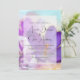 Un faire-part de mariage avec une belle photo d'un crocus violet foncé à l'intérieur d'un pot en verre. Une fleur violette légère présente dans l'arrière - plan.