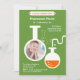 Cette invitation moderne et captivante est idéale pour une soirée à thème Mad Science. Il comporte un panneau "Laboratoire des Sciences", quelques instruments de laboratoire sur un arrière - plan de couleur solide et une photo du futur scientifique. Ce design unisexe est idéal pour un enfant curieux et aventureux. Ajoutez votre propre libellé.
