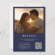 Invitation Photo florale bleu marine moderne Photo QR Code Ma