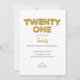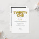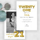 À 21 heures ! Célébrez cette étape inoubliable avec une invitation en photo élégante en ballon d'or à 21e anniversaire. Le design comprend "TWENTY ONE" en bulle d'aluminium faux or en lettres avec de l'espace pour une photo personnalisée, créant un équilibre parfait entre le plaisir et l'élégance. Personnalisez facilement le nom, l'heure de la fête, l'emplacement et le RSVP. Qu’il s’agisse d’une soirée de cocktail classe, d’un jardin ou d’un grand week-end d’anniversaire, cet invitation moderne donne le ton — et devient un gardien digne d’une photo que les invités adoreront.