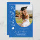 Photo Graduation Party Modern Elegant Script Invitations présente votre photo préférée avec le texte "She'It" dans élégante typographie de script de calligraphie sur un arrière - plan bleu. Ajoutez ci-dessous les informations sur l'invitation à passer votre diplôme. Personnalisez en modifiant le texte dans les zones de texte fournies. Envoyer comme un téléchargement numérique instantané, comme une invitation physique par courrier ou les deux. Créé par ©2025 Evco Studio www.zazzle.com/store/evcostudio