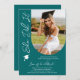 Photo Graduation Party Modern Elegant Script Invitations présente votre photo préférée avec le texte "She'It" dans élégante typographie de script de calligraphie sur un arrière - plan vert. Ajoutez ci-dessous les informations sur l'invitation à passer votre diplôme. Personnalisez en modifiant le texte dans les zones de texte fournies. Envoyer comme un téléchargement numérique instantané, comme une invitation physique par courrier ou les deux. Créé par ©2025 Evco Studio www.zazzle.com/store/evcostudio