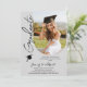 Photo Graduation Party Modern Elegant Script Invitations présente votre photo préférée avec le texte "Graduate" dans élégant script de calligraphie typographie sur un arrière - plan platine. Ajoutez ci-dessous les informations sur l'invitation à passer votre diplôme. Personnalisez en modifiant le texte dans les zones de texte fournies. Envoyer comme un téléchargement numérique instantané, comme une invitation physique par courrier ou les deux. Créé par ©2025 Evco Studio www.zazzle.com/store/evcostudio