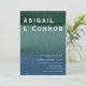 Éléments : arrière - plan abstrait de lavage à l'aquarelle. Les noms et les détails apparaissent dans les polices sans serif modernes. L'arrière comprend la photo et le code RSVP QR. Couleurs : bleu, vert, émeraude, océan, vert mer, marine, bleu royal, azur. Thèmes : moderne, minimaliste, contemporain, tons bijoux. Collection : Moderne Minimaliste Blue Turquoise Photo Mariage Collection. Type de produit : Invitations de mariage