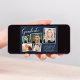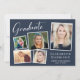 Invitation de la fête de graduation bleu moderne avec un collage photo de 5 images éparpillées dans des cadres blancs, "Graduate" dans un script blanc chic, le nom de la grade dans la typographie blanche élégante et leur école et année de classe dans la simple typographie blanche. Ajoutez les détails de votre fête à l'arrière.