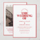 Cette faire-part de mariage moderne en monochrome présente un agencement propre avec une bordure rouge audacieuse, mêlant design minimaliste et détails attrayants. Parfait pour les couples à la recherche d'une façon élégante et contemporaine d'annoncer leur journée spéciale.