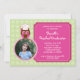 Jolie et moderne invitation à la remise des diplômes. Idéal pour obtenir un diplôme d'études préscolaires ou maternelles. Comprend un chouette chouette avec un bonnet de graduation. La photo est entourée d'un cercle avec un bord de pétoncle pour une touche amusante. Le libellé se trouve à l'intérieur d'un cadre orné. Ajoutez une photo de l'heureux diplômé et votre propre texte.