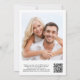 Améliorez votre faire-part de mariage en vellum ou enregistrez les chevauchements de date avec ce stock de carte arrière - plan blanc avec votre photo sur le devant. Au verso, téléchargez une photo supplémentaire et entrez l'adresse de votre site Web mariage pour créer un code QR que vos invités peuvent scanner en ligne vers RSVP et obtenir des détails supplémentaires sur le mariage, tels que les hébergements.
