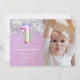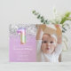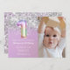 Photo Rainbow Sparkle 1er Anniversaire Invitation Parties scintillant 1er anniversaire invitation pour une fille de 1 an avec écriture de script moderne et ballon amusant en feuille d'aluminium.