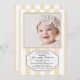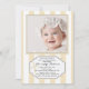 Des rayures alternées de crème et de blanc et un panneau décoratif sous la fenêtre de la photo créent cette charmante invitation unisexe. La croix mise en vedette peut être déplacée à n'importe quel endroit, agrandie ou réduite (+-) ou supprimée.