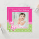Invitation Photo rose d'anniversaire de point de polka de