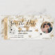 Destination Beach Wedding Boarding Pass Billet Gold Plane Économisez la Date avec l'icône coeur et avion avec des feuilles tropicaux. Ajouter votre photo