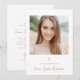 Cette invitation à la confirmation religieuse simple et élégante, fausse or rose et blanche, présente une typographie de script de style vintage et une croix d'or faux rose. Ajoutez leur photo à l'avant. Un style élégant, classique et minimaliste qui reste unique et contemporain.