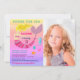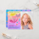 Joli, caricature, adorable petite sirène avec queue violette rose et mignon cheval de mer bleu en combinaison avec jaune - rose des vagues arrière - plan et doux motif de mer à l'arrière. Belle, unique, fantasque invitation 3ème anniversaire, avec photo personnalisée de la fille. Sous la mer - notre petite fille a trois ans !