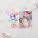 Invitation Photo Unicorn Rainbow Sparkles Gold 1er anniversai