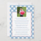 Une invitation classique d'upsherin à gingham bleu et rouge, avec une photo et un poème upsherin éditable au verso.