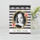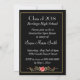Graduation photo noir et blanc Open House Invitation avec cadre or et roses de pêche.