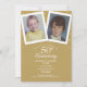Personnalisez avec vos photos d'enfance préférées et vos informations spéciales d'anniversaire de cinquante ans en or avec une typographie élégante en or. Le verso présente des cœurs chic en confettis sur fond or. Conçu par Thisisnotme©