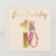 Pierre le lapin avec un numéro d'or un pour ce premier anniversaire spécial.