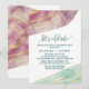 Cette carte d'invitation mauve à gemme en bandes célébrons est parfaite pour un événement moderne. Le design balnéaire présente deux étonnantes gemmes d'agate en violet clair et turquoise avec des bandes en feuille d'or fausse. Le dos présente une tranche d'agate coordonnée. Cette invitation est parfaite pour une fête de fiançailles, une soirée entre filles, ou tout événement ou fête.