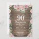 Rustic Floral Pink Peonies Surprise 90e anniversaire Invitation pour les femmes. Fleur florale aquarelle. Elégante Rose rose et Fleurs de pivoine. Anniversaire adulte. Arrière - plan rustique en bois. Country Vintage Retro. 13ème 15ème 16ème 18ème 20ème 21ème 30ème 40ème 50ème 60ème 70ème 80ème 90ème 100ème, tout âge. Pour plus de personnalisation, cliquez sur le bouton "Customiser" et utilisez notre outil de conception pour modifier ce modèle.