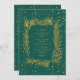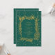 Cadre en pin doré avec confetti de cône à feuillage persistant vert hiver faire-part de mariage de Noël. Un beau design mariage qui comprend un cadre de pin doré avec cône et aiguilles et confetti d'or bordé d'arrière - plan vert à feuillage persistant. Le dos est recouvert d'un motif de confettis doré.